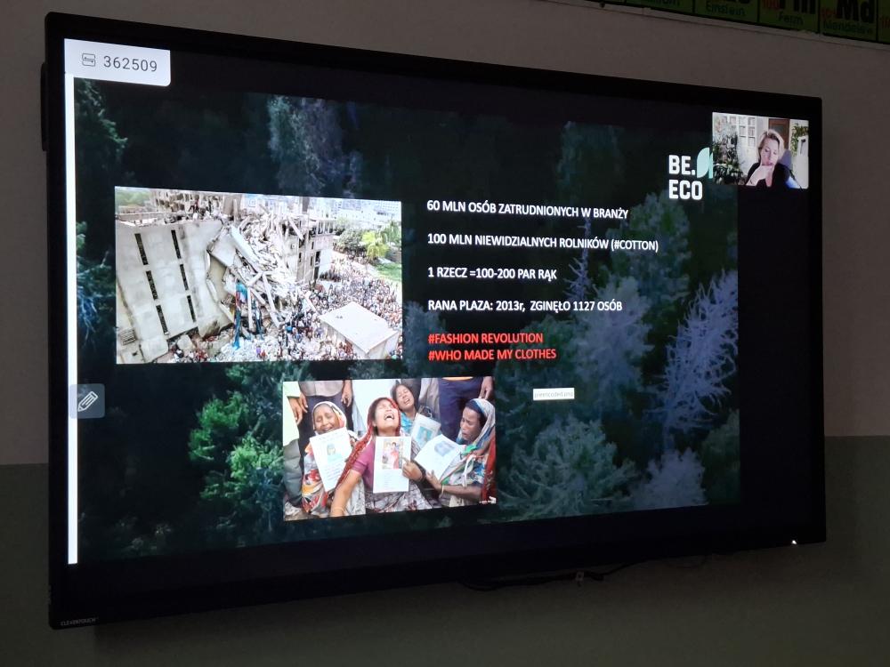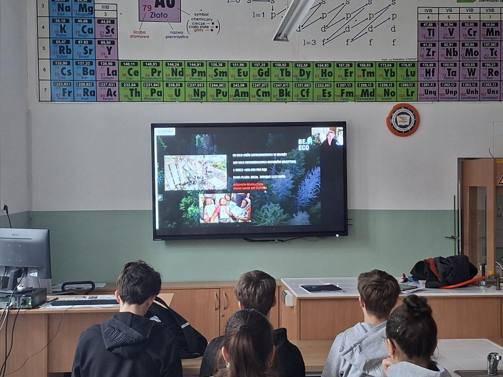Uczniowie naszej szkoły w ramach zajęć z chemii brali udział w webinariach dotyczących ochrony środowiska . Stowarzyszenie Be.Eco - które zaprosiło nas do współpracy - przeprowadziło lekcje dla 170 naszych uczniów dotyczące zanieczyszczeń gleby i ich wpływie na stan powietrza. Zajęcia dotyczyły również świadomej mody i drugiego życia ubrań a także ochrony wody i gleby oraz produkcji żywności.